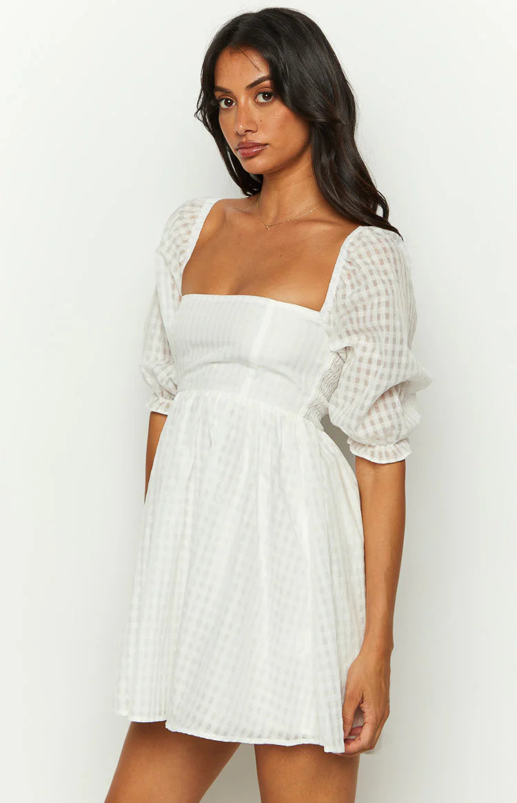 Keep it sweet in this white babydoll ! The gorgeous gingham print makes this dress the perfect daywear fit! Simply pair with and dainty gold to elevate your look!