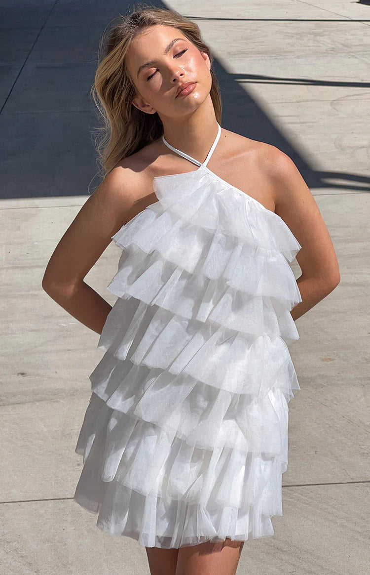 No words to describe how angelic this mini dress is! Look incredible at your next in our 'She's here' . pair with heels to tie the look all together! Accessorise with to complete the look!